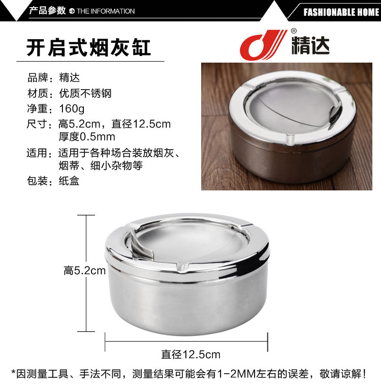 开启式不锈钢烟灰缸