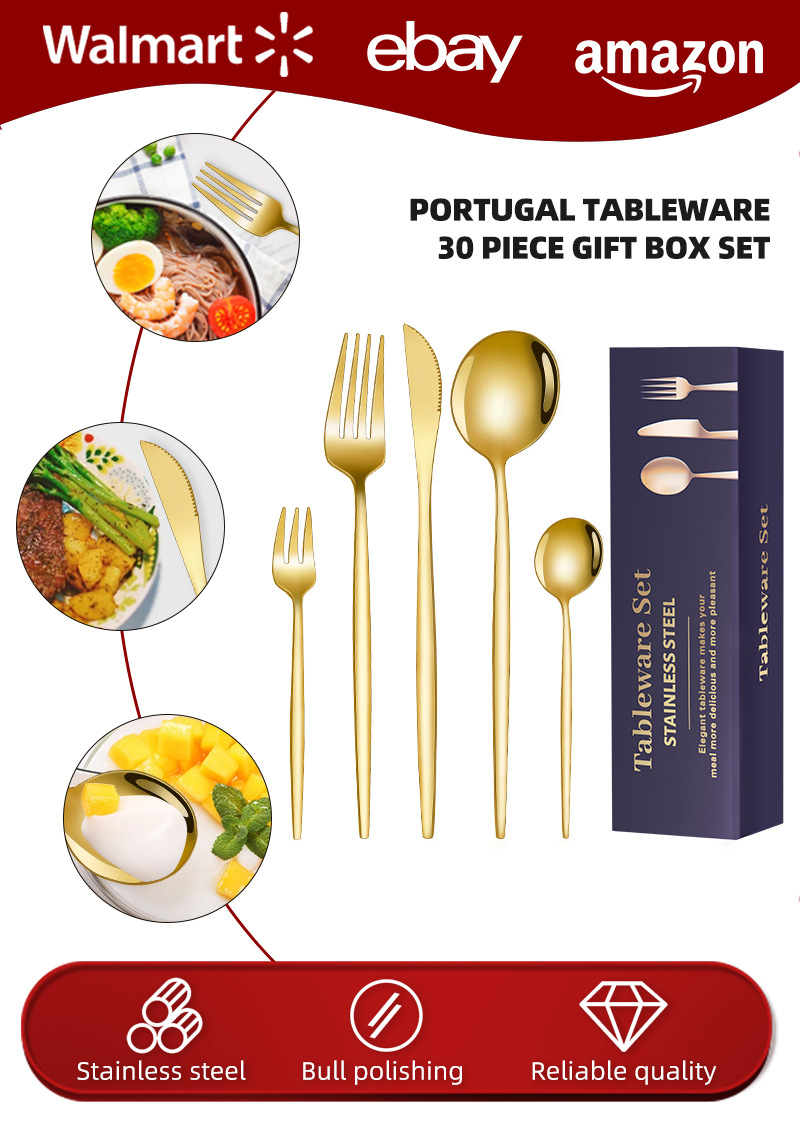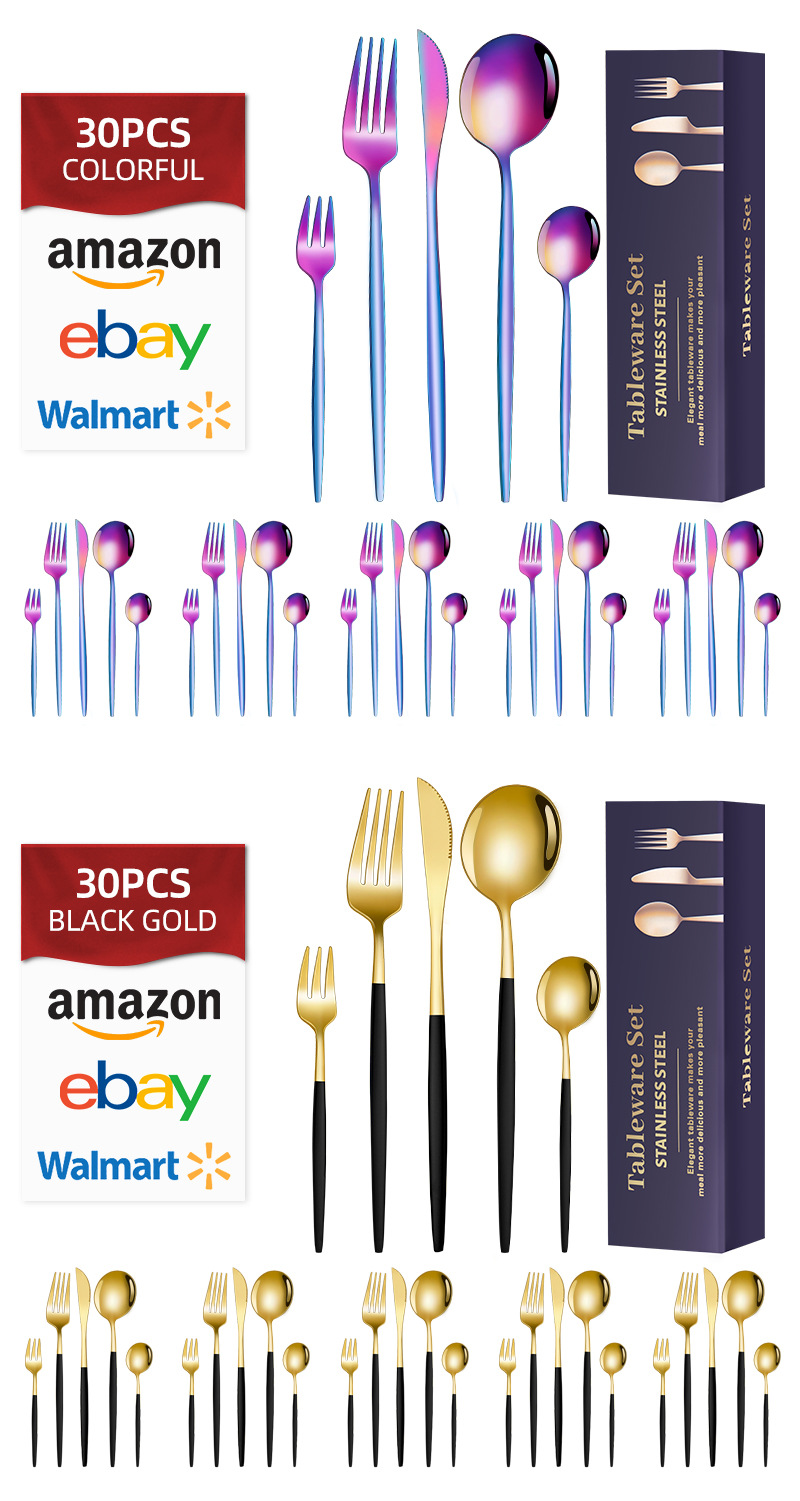 跨境货源30件套餐具套装 亚马逊不锈钢